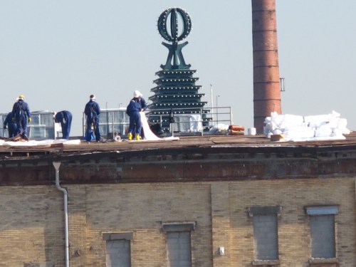 One photographer writes: “Took some photos today, Thursday 8/19/10, at 9 am, most taken from the Boardwalk side. They are working on the theater, south side of building. Looks like they are using a staircase to bring stuff up to the roof. All the workers are in air tight suits, see the yellow boots. They are laying out white plastic sheets on the roof and dumping stuff into the white sheets, tying up the sheets and stacking the rolls.” Okay DEP, we would like to know if the City is doing “Ambient air monitoring” to measure airborne asbestos fiber concentrations in the general vicinity of the worksite. Unlike the DOB website, the DEP site provides no information to the public on permits that have been issued. Readers may want to take a look at the DEP’s “New Asbestos Rules & Regulations, effective June 6, 2010.”