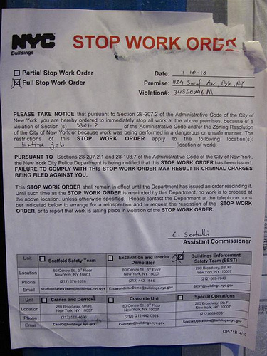 Stop Work Order issued by Building Enforcement Safety Team for 1124 Surf Ave. November 10, 2010. Photo © Mr Jones via ATZ