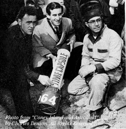 Charles Denson, Executive Director of the Coney Island History Project, inside the Astroland Rocket awaiting a new generation of space adventurers! Photo © Astroland Archives/Coney Island History Project