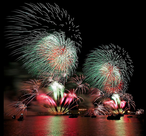 Happy Lunar New Year! Today is the first day of the Chinese New Year 4713, the Year of the Sheep, based on the Chinese lunar calendar. On Tuesday night, a Grucci fireworks display over the Hudson River launched a week-long celebration of Chinese art and culture in New York City. For the event schedule, visit the website Fantastic Art China. Many thanks to ATZ reader Jim Levine, who sent us his gorgeous photos and video of the fireworks.