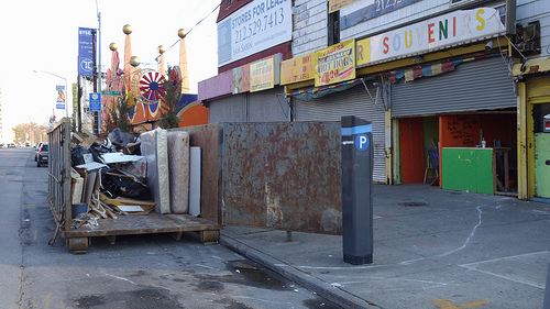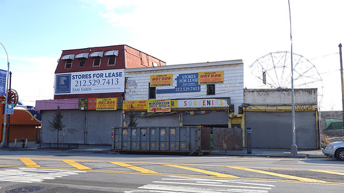 The Jones Walk side of the Grashorn building has been vacant for several years, as ATZ reported in “The New Coney Island: A Tale of Two Jones Walks.” Why? A business owner who had leased a small stand on the Walk from Thor in 2008 told us in 2009 that the rent had tripled from $8,000 to $24,000. He declined the space and left Coney Island, never to return.