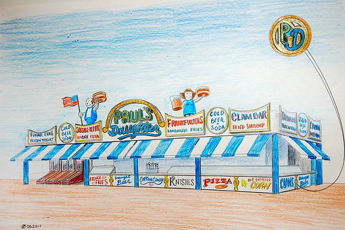 The beloved seaside restaurant and its signage were featured in the 1999 music video “Summer Girls,” in which the band LFO danced on the boardwalk as well as on the roof in front of the Astroland Rocket. Taken as a whole, Paul’s store is a sublime example of the midway maxim “It’s the front of the show that gets the dough!” It’s a lesson that their new neighbor Coney Cones, which has a store front that would look at ease in Manhattan or Miami, but doesn’t stand out in Coney Island, is apparently unfamiliar with. Savvy restaurateurs are not necessarily successful Boardwalk concessionaires.