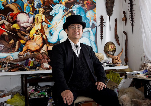 Before Sandy: Takeshi Yamada with Baby Mermaid in his Coney Island Studio. Photo via AMC Immortalized