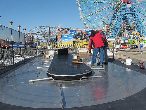 Speedway ride being assembled at Deno’s Wonder Wheel Park. March 2, 2015. Photo via Deno’s Wonder Wheel Park