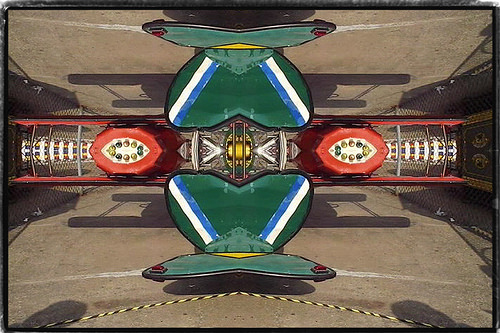 A kaleidoscope is a cylinder with mirrors that creates a colorful pattern, due to the reflection of beads or pebbles, off the mirrors. I used the ‘mirror’ filter in imovie to create the kaleidoscope effect and edited the film in Final Cut,” says Dembrow. These images from the movie demonstrate the kaleidoscope effect.