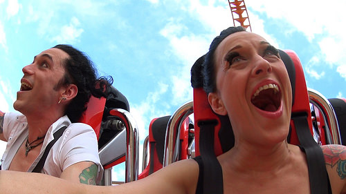 Ray Valenz and Betty Bloomerz of the Coney Island Sideshow ride the Thunderbolt in this still from Jim McDonnell’s The Longest Friday of the Year